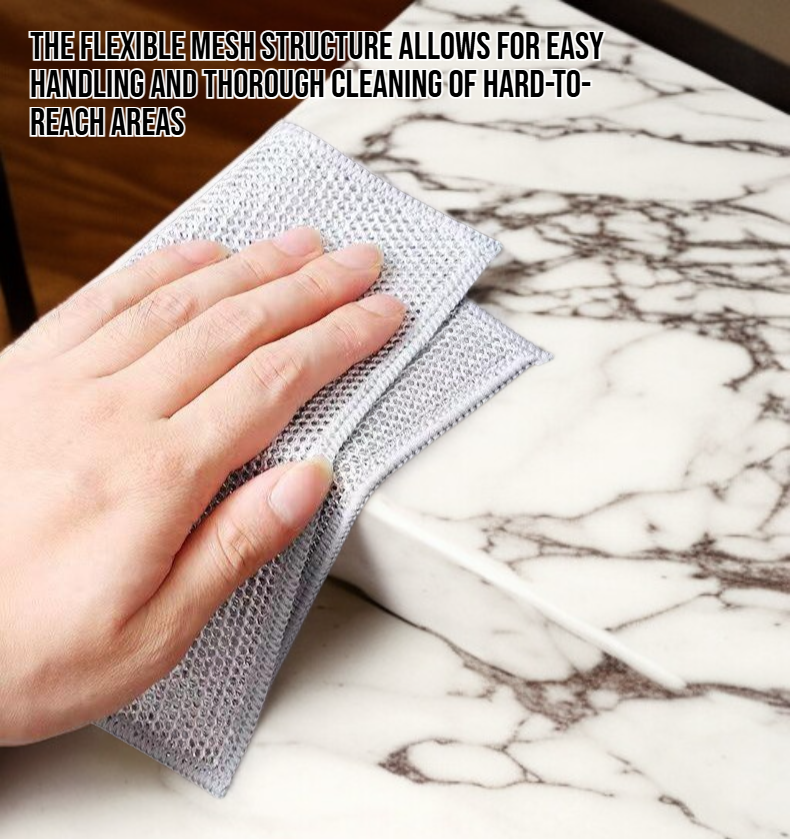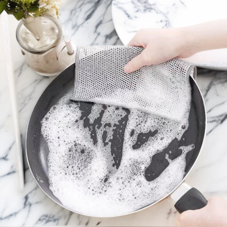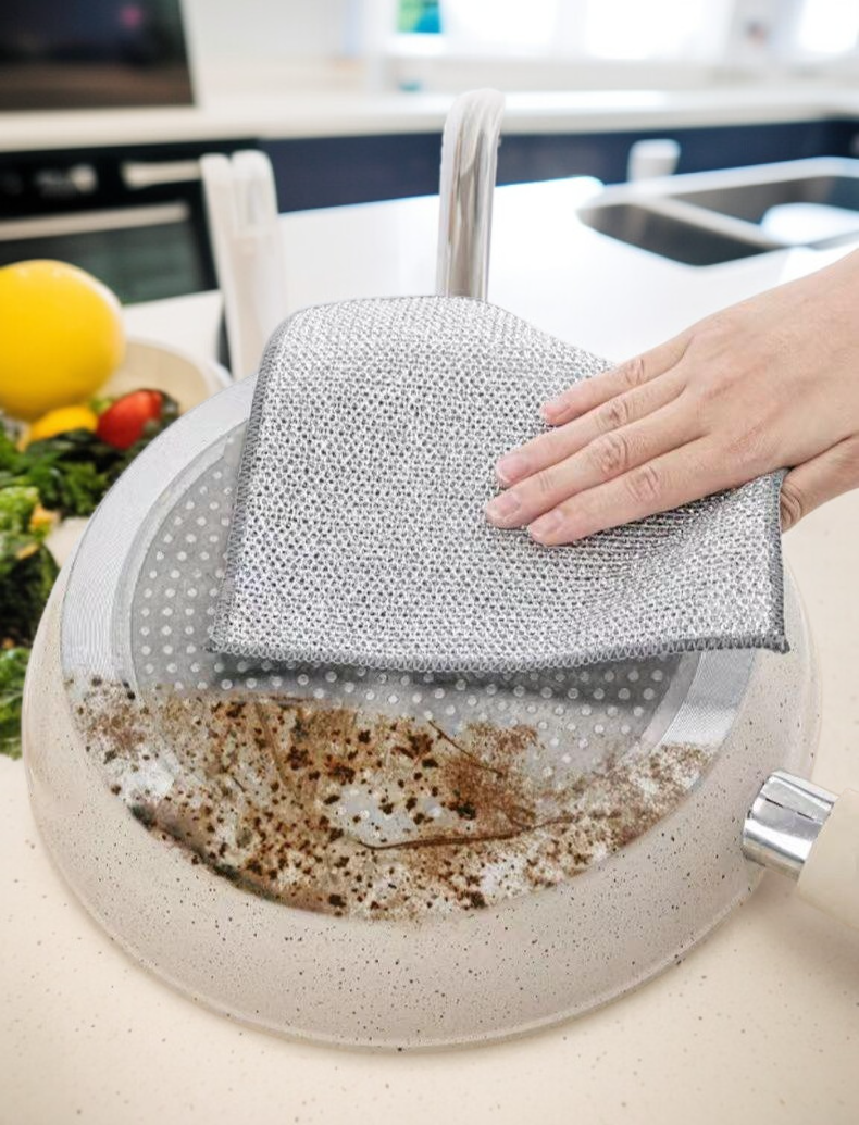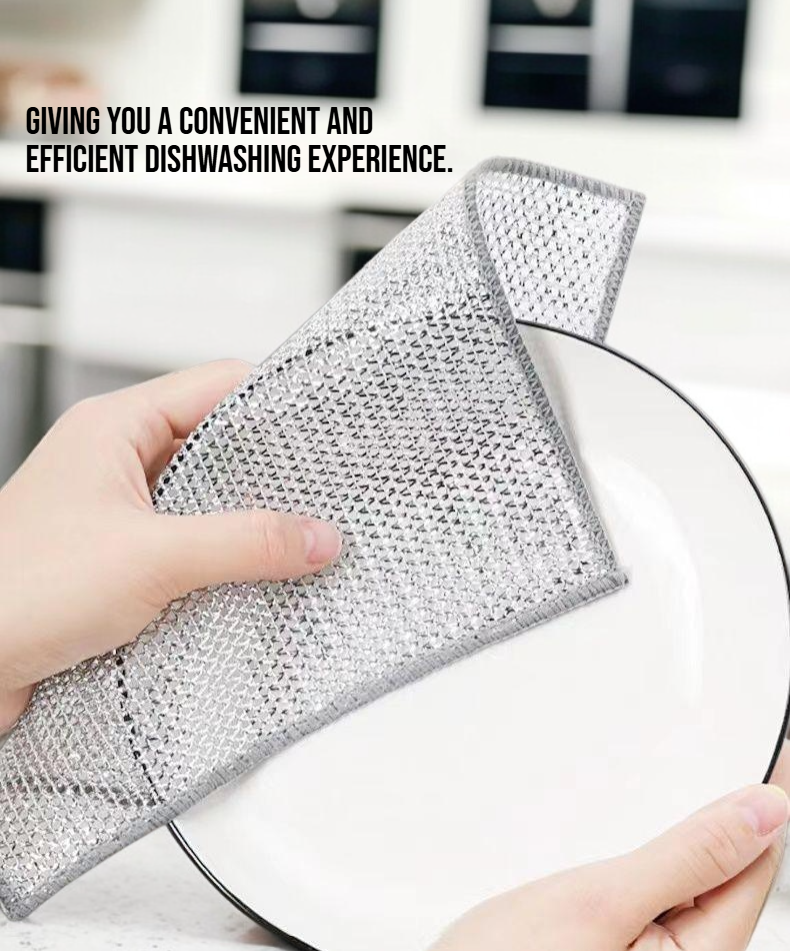 ● Crafted from durable metal wire, this dishwashing cloth effectively removes stubborn grease and grime without scratching your cookware, ensuring spotless results every time.